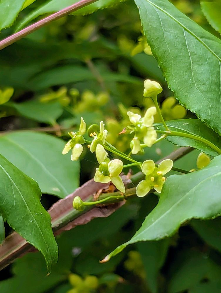 よく見ないと見逃してしまいそうなニシキギの花✨