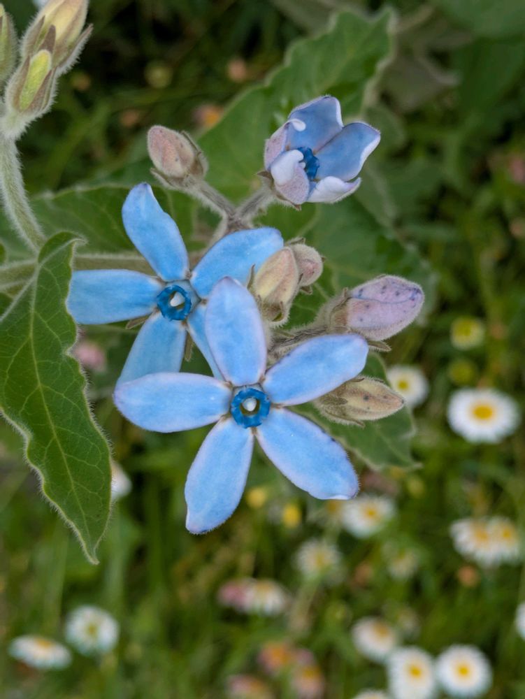 咲き始めたオキシペタラムと、切り戻しから返り咲き始めた勿忘草
