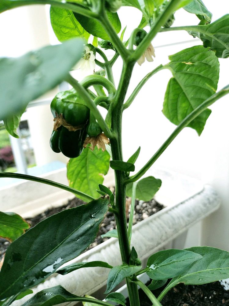 少しずつ生長しているピーマン🫑家庭菜園のお野菜って美味しすぎる〜〜😉 大きくなぁれピーマン🫑
