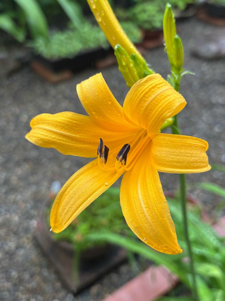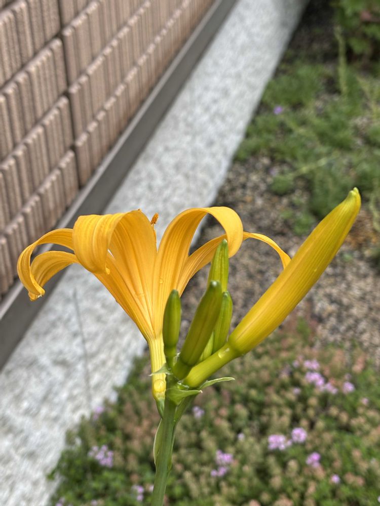 5月1日に咲いた花壇の日光黄萓(ニッコウキスゲ)ですが、今朝3か所目が咲きました😄