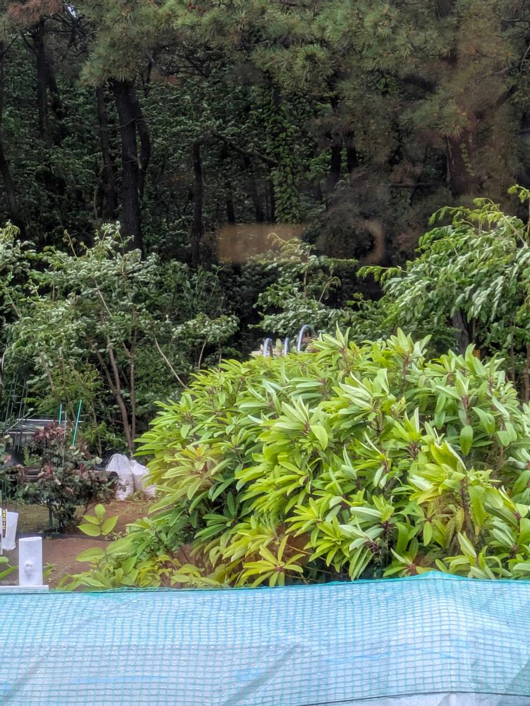 風除けのユズリハが大きく揺れて畑の野菜を守ってる。