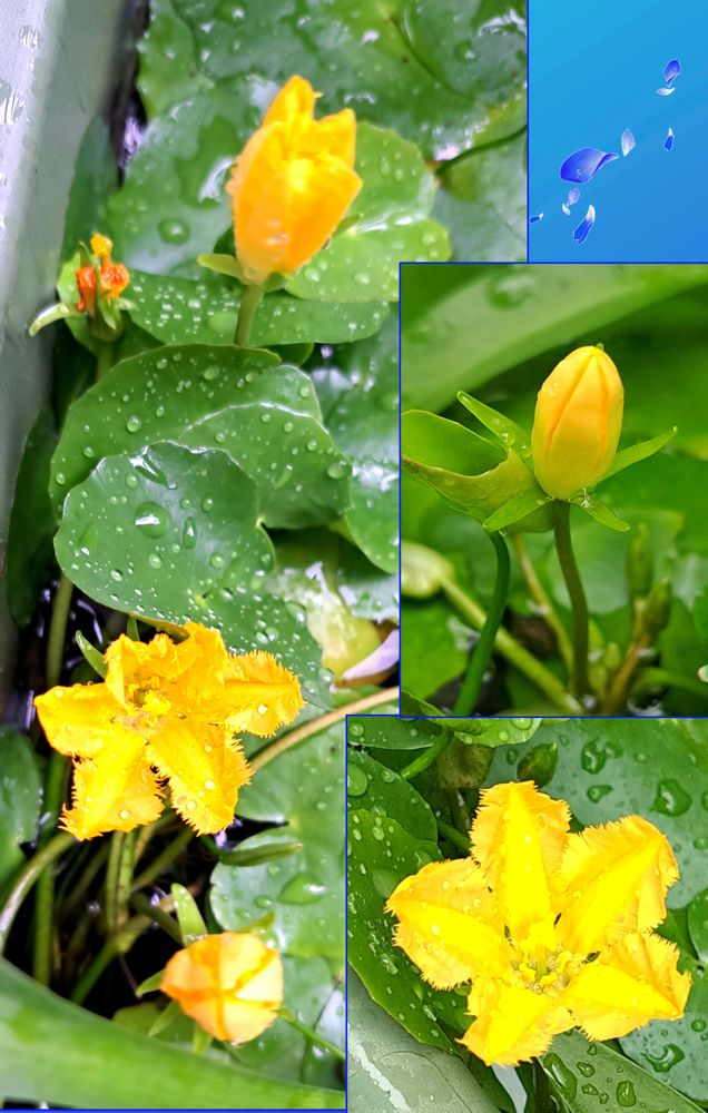 ①枚目…庭の水生植物コーナーの「アサザ」が、毎日咲いてくれてます(*´∀`)♪💖