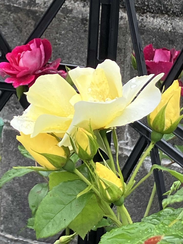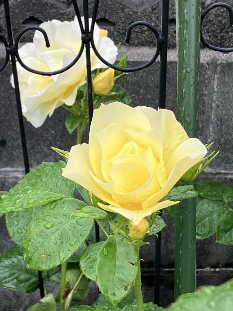 雨に濡れた黄色の薔薇も綺麗ね😊