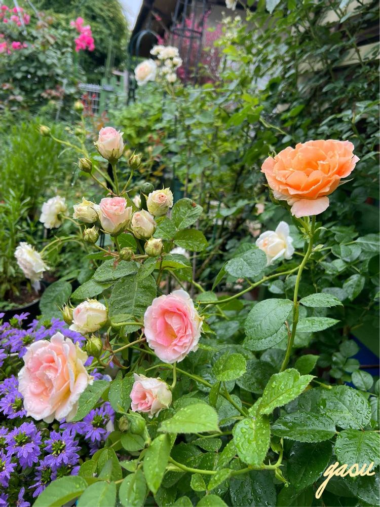 アジュール綺麗に咲いていますね。私のアジュールは昨年イマイチで今年はいい感じ。でも、先週の暑い日に咲き始めた花は水切れでチリチリになってしまいました🥹水をやり復活はしたけど美しさは半減。花弁の薄いバラの宿命ですかね🤨日が当たり過ぎるのはよくないのですかね?
