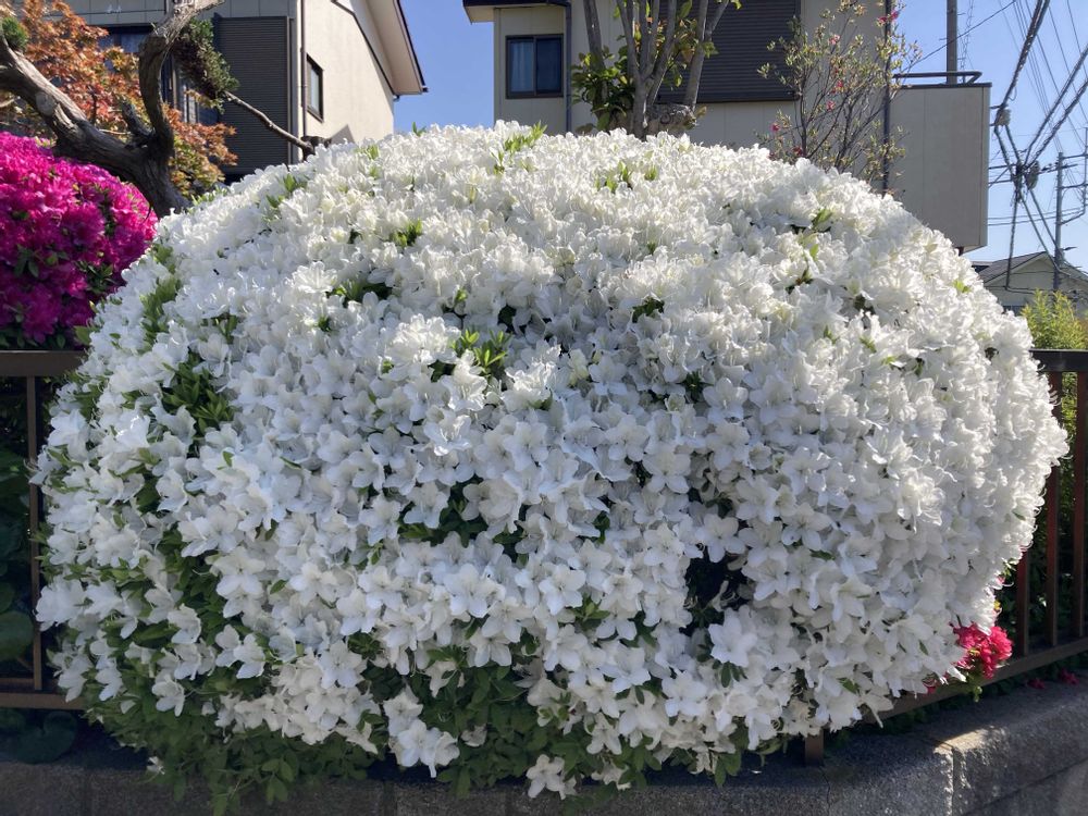 満開!葉が小さいのでサツキかなと思ったら、おしべの数が多いのでツツジのようです