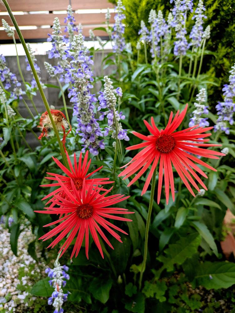 お花友達からもらった毎年咲いてくれるガーベラと、後ろの花は、、、お名前忘れました💧