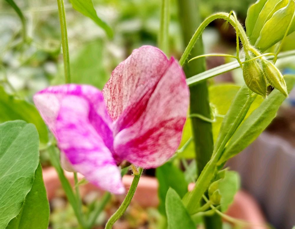 はるばる福岡の🍀花友さんの所から来てくれた スイートピーの種◉ 雪で新芽🌱数は減りましたが…今、愛らしい花を咲かせてくれています😊💞