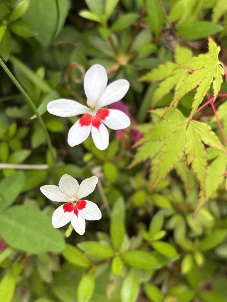 実生のモミジとヒメヒオウギ。