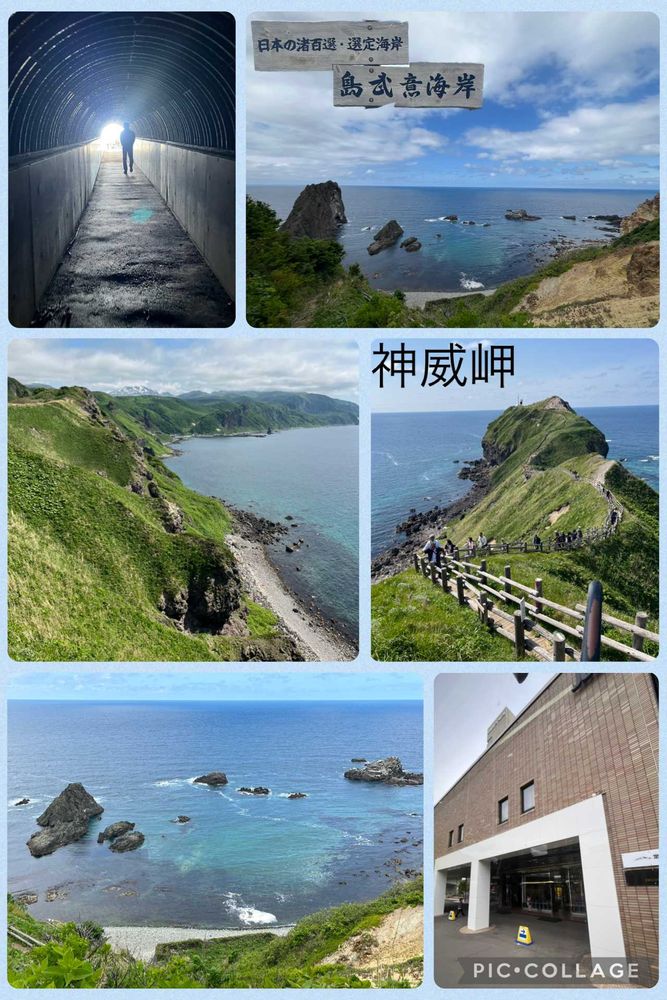 14...神威岬…積丹ブルーの綺麗な岬、先端まで登って来ました(往復40分位)ソフトクリーム食べて来ました🍦
