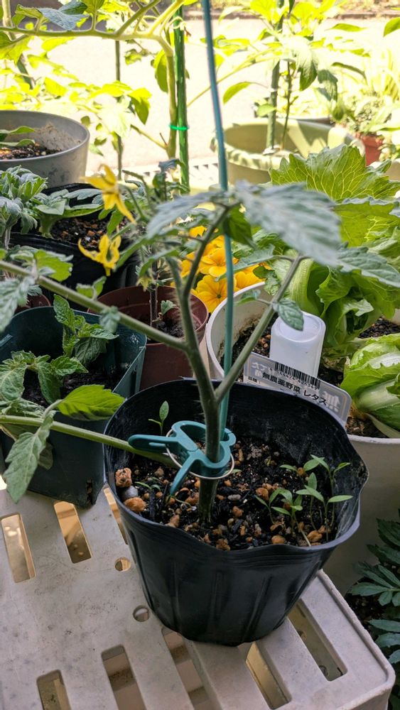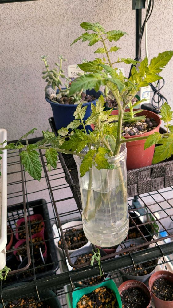 トマト栽培わき芽がもったいないシリーズ…わき芽を水耕栽培の後植えよう!丈夫に育つように🙏花つきが〜〜〜実になるか?🍅