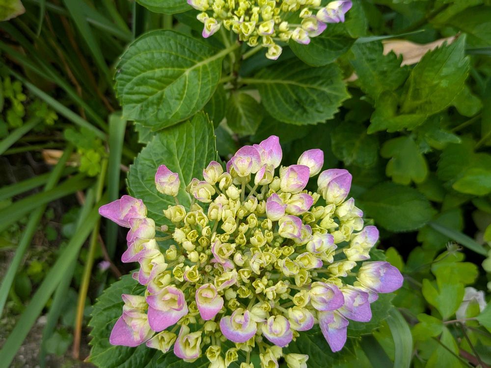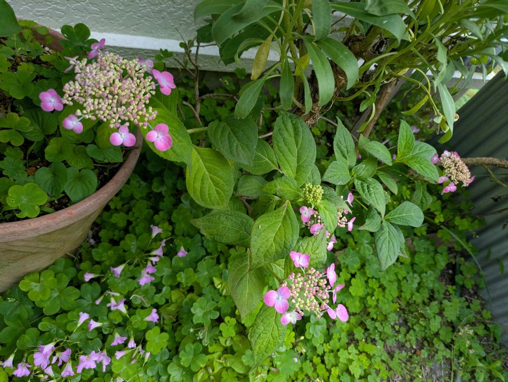 花壇のアジサイも咲いてます