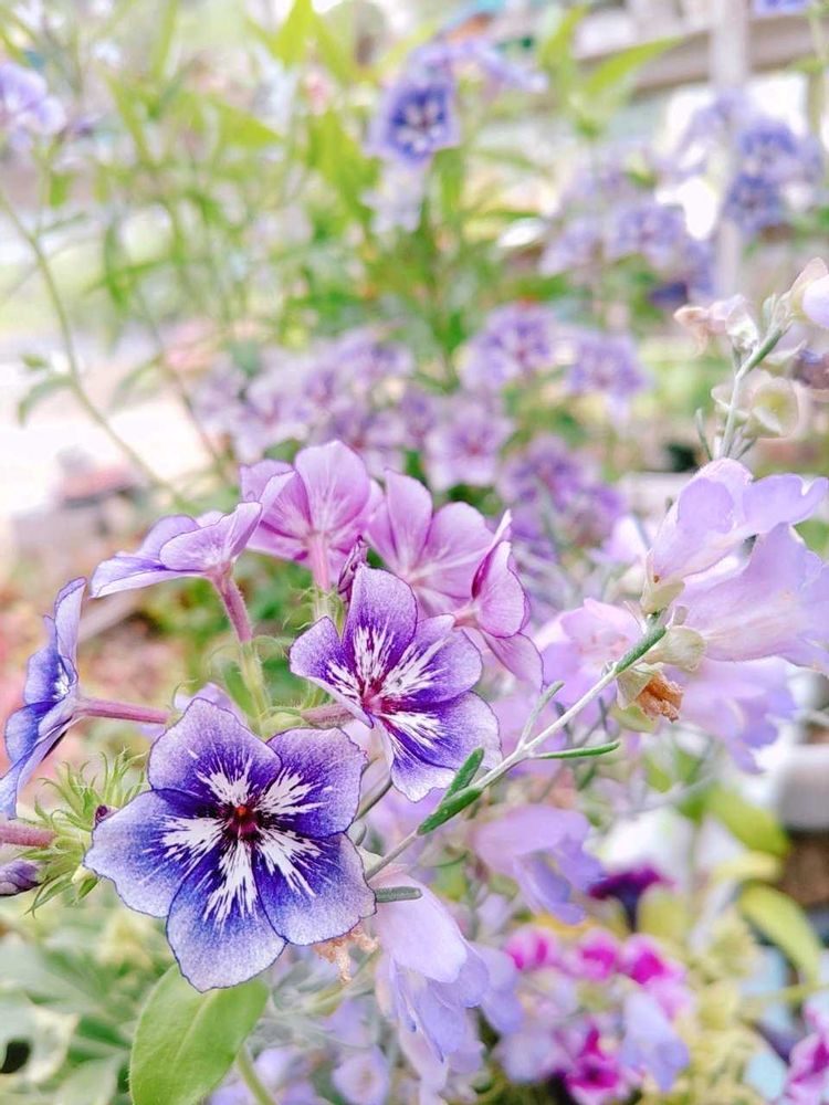 ①アメイジンググレイ 今年は種蒔きが成功して 今たくさん咲いてます💜💙