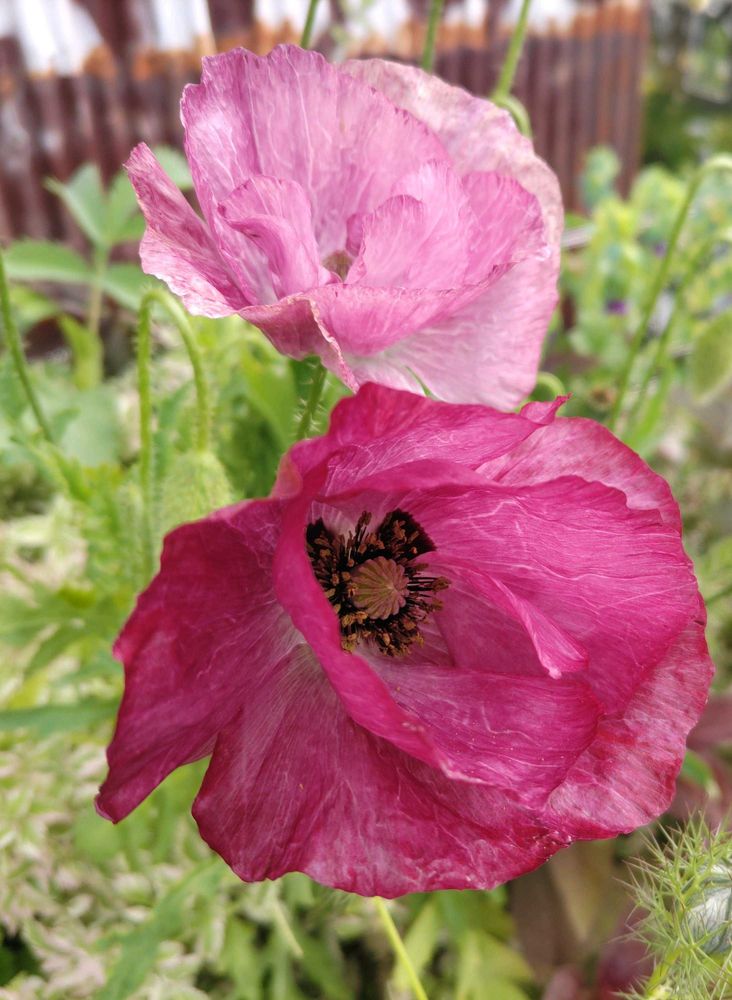 花壇に植えられたポピーたちはニュアンス色