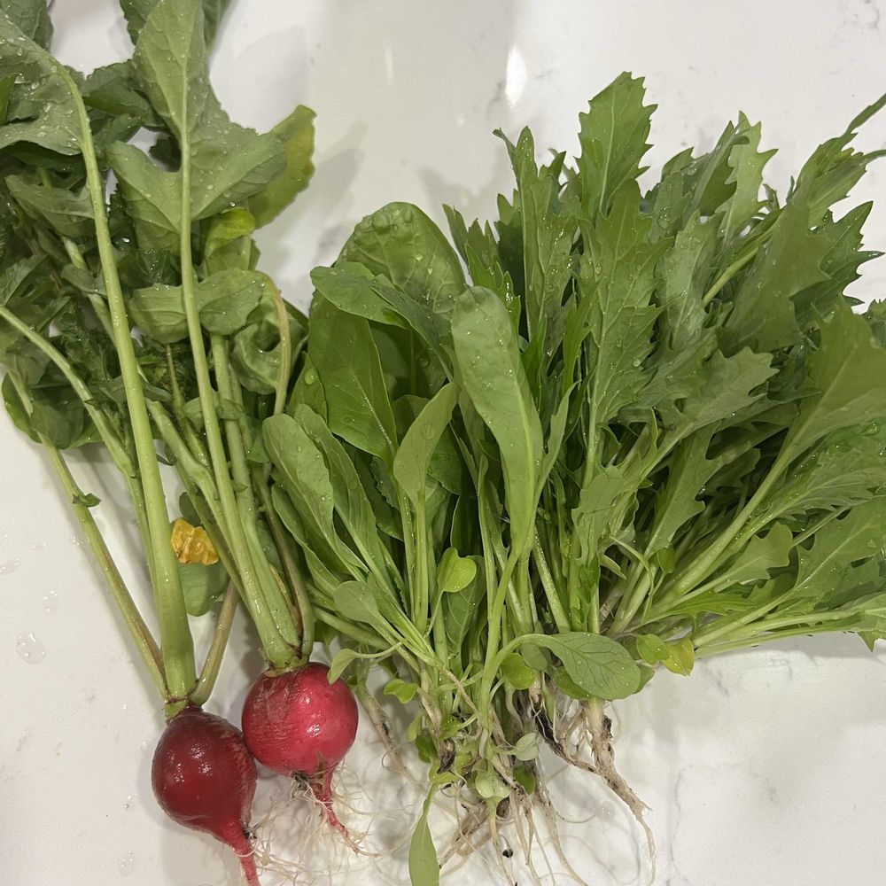 旅行から帰ってきたら水菜と小松菜が董立ちしそうだったから急いで収穫😂小さい😇また秋口に👋