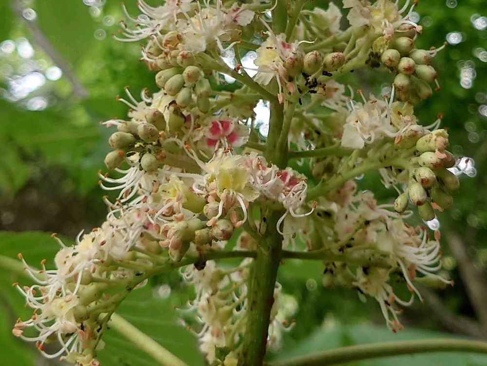 送粉者であるミツバチやマルハナバチ類はこの蜜標の色の違いを見分けることができ、トチノキにとって効果的に花粉を運んでもらうことができます