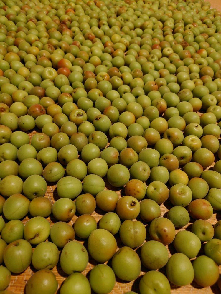 昨日、庭の小梅を収穫しました。追熟のためにお部屋に広げて色が来るのを待ってます。