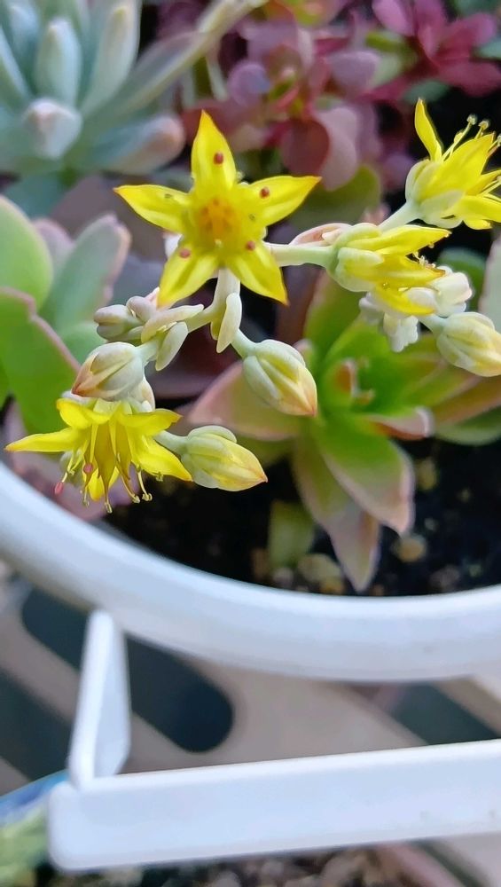 多肉植物の花ざかりです。黄麗さんかなぁ?