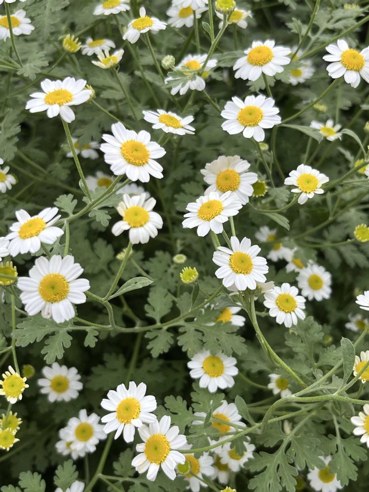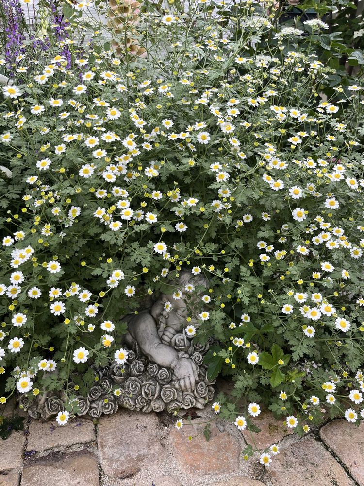 あまり自信がありませんが、マトリカリア(ナツシロギク)のような気がします。他の方のご意見も参考にしてください😅