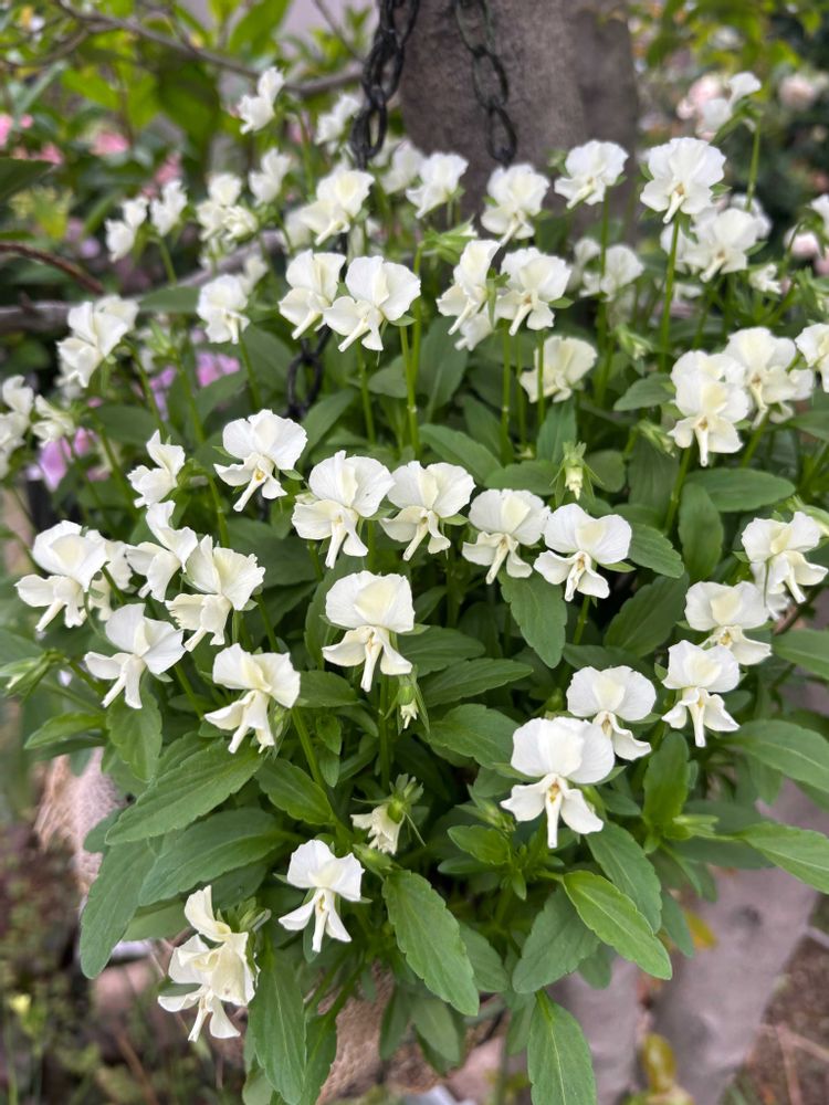 ゾウさんビオラは 小ぶりになって白っぽくなっちゃったけど 花数にびっくり🫢