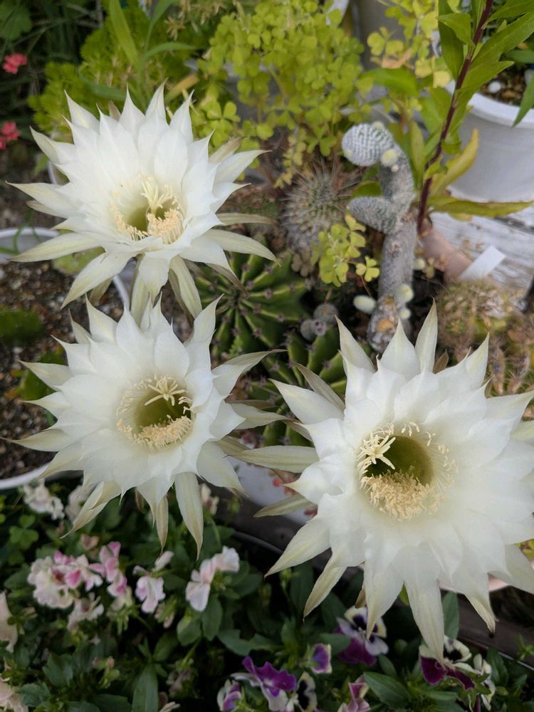 サボテンの花純白できれいですね。私は今一サボテンは分からず放置状態ですので教えて下さい。