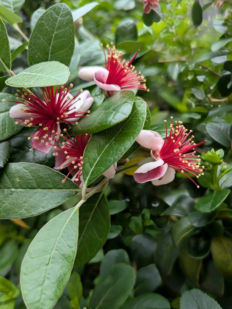 フェイジョアのお花が今年は花数も多くて見応えが有ります*˙︶˙*)ノ"