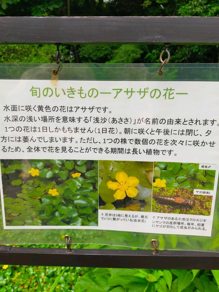 看板の右下にシオカラトンボ、羽化したばかりは黄色で、ムギワラトンボ(麦わらの色が似てるから)と呼ばれるそうです(2枚目)