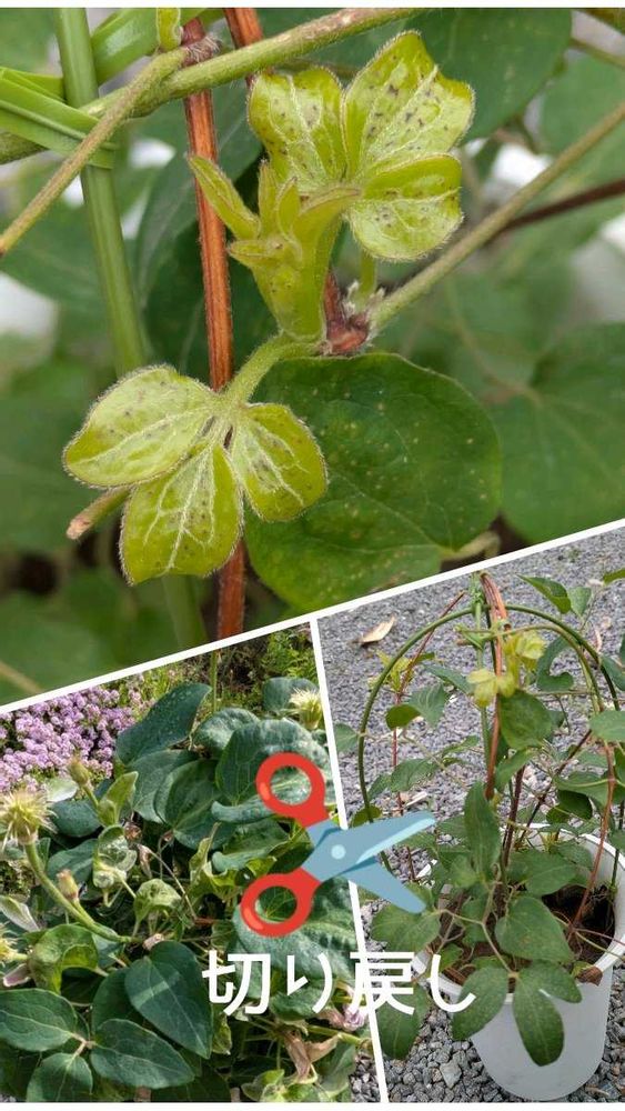 ⑤なぜか今年のクレマチスは母の日まで辛抱できずに散っでしまったので、切り戻したら小さな新芽が出てきたから✨🌱✨