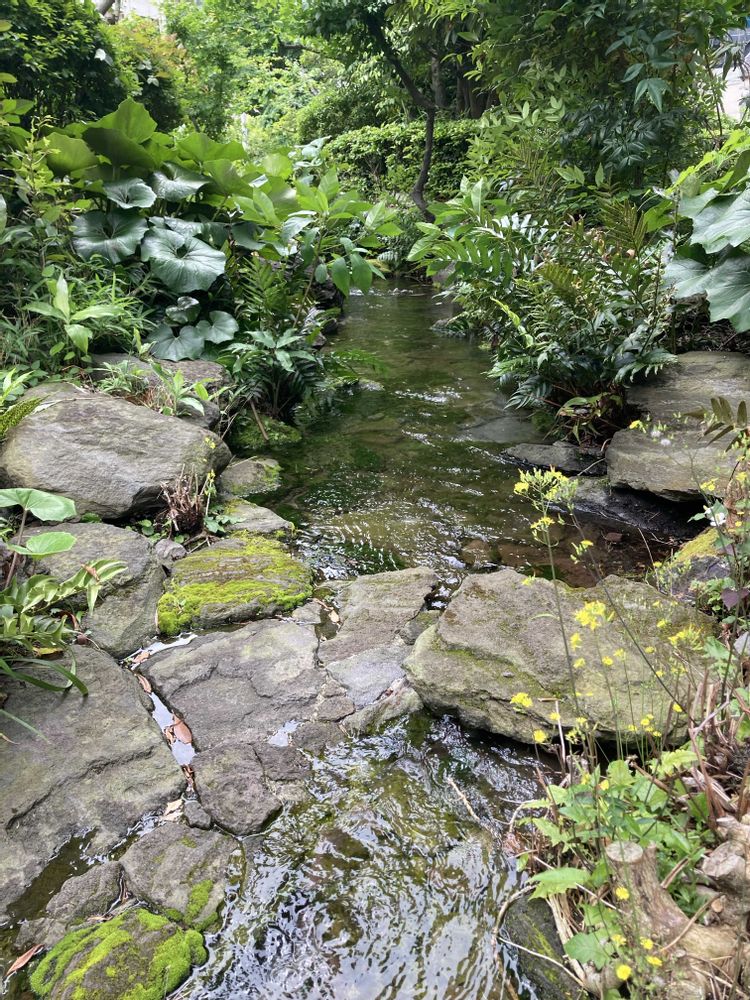 麹町ミレニアムガーデンコートの公開緑地はビオトープになっていて、せせらぎが心地よい。 喫煙所が閉鎖されてより快適になった。