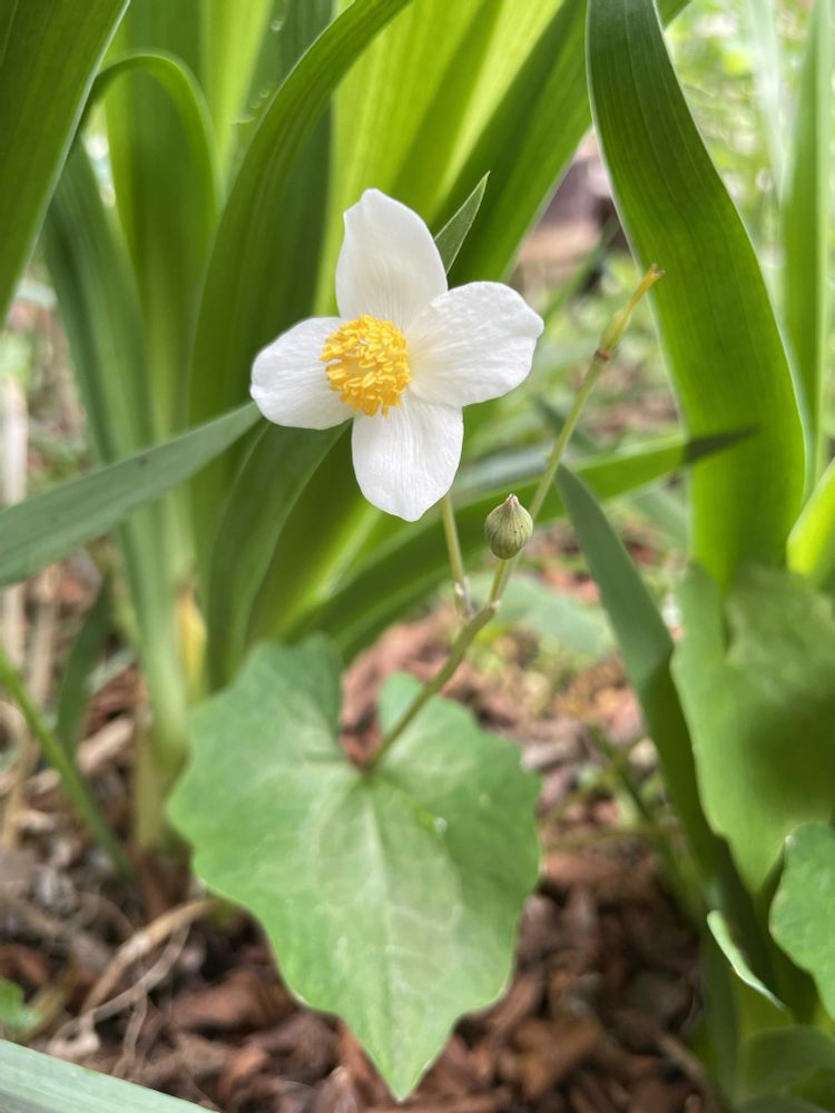 花茎5cmほどの花の中心部に黄色の雄しべをつけている姿はケシを想起させる。