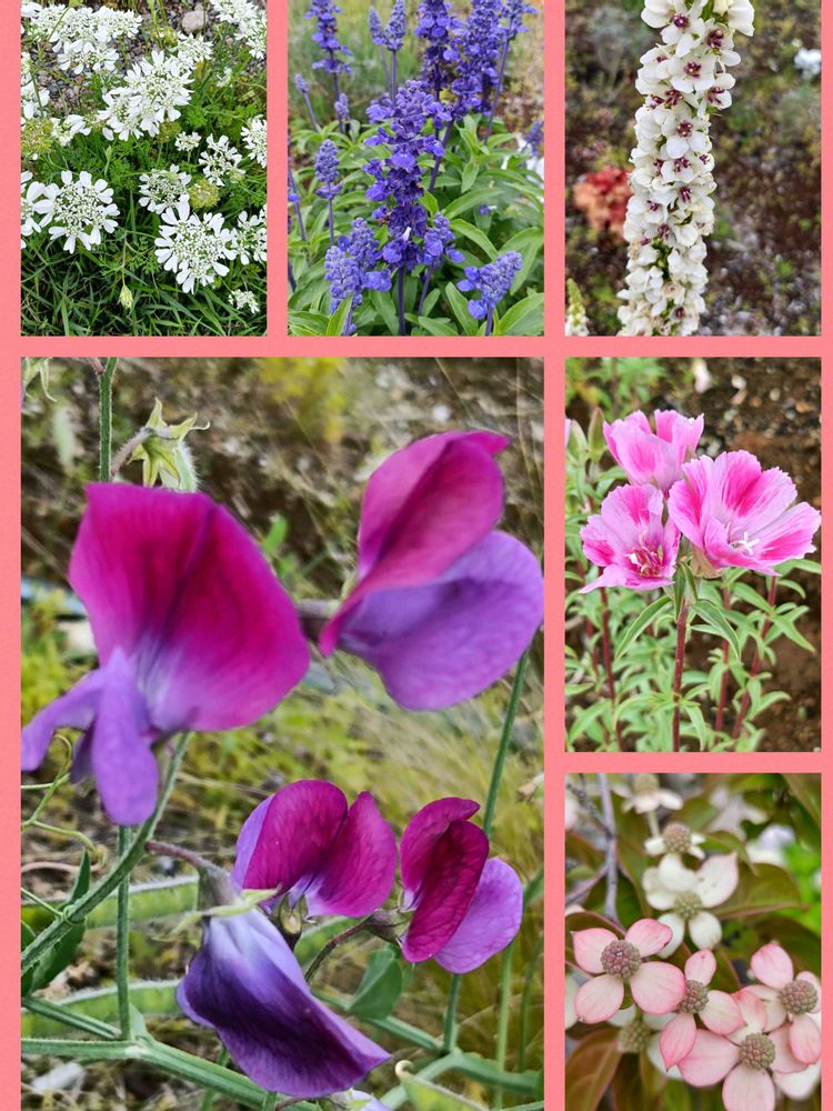 ⑤ピンクのペンステモンが、駅の改札口を出てすぐにたくさん拡がって咲いていて、薄いピンクに渋い葉っぱでも、目立っていました