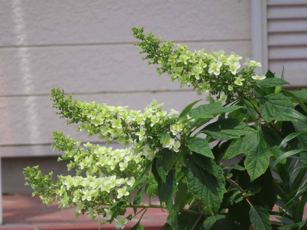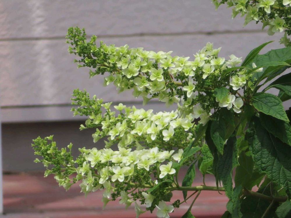 一重と八重のカシワバアジサイが爽やかに咲き始めていました。