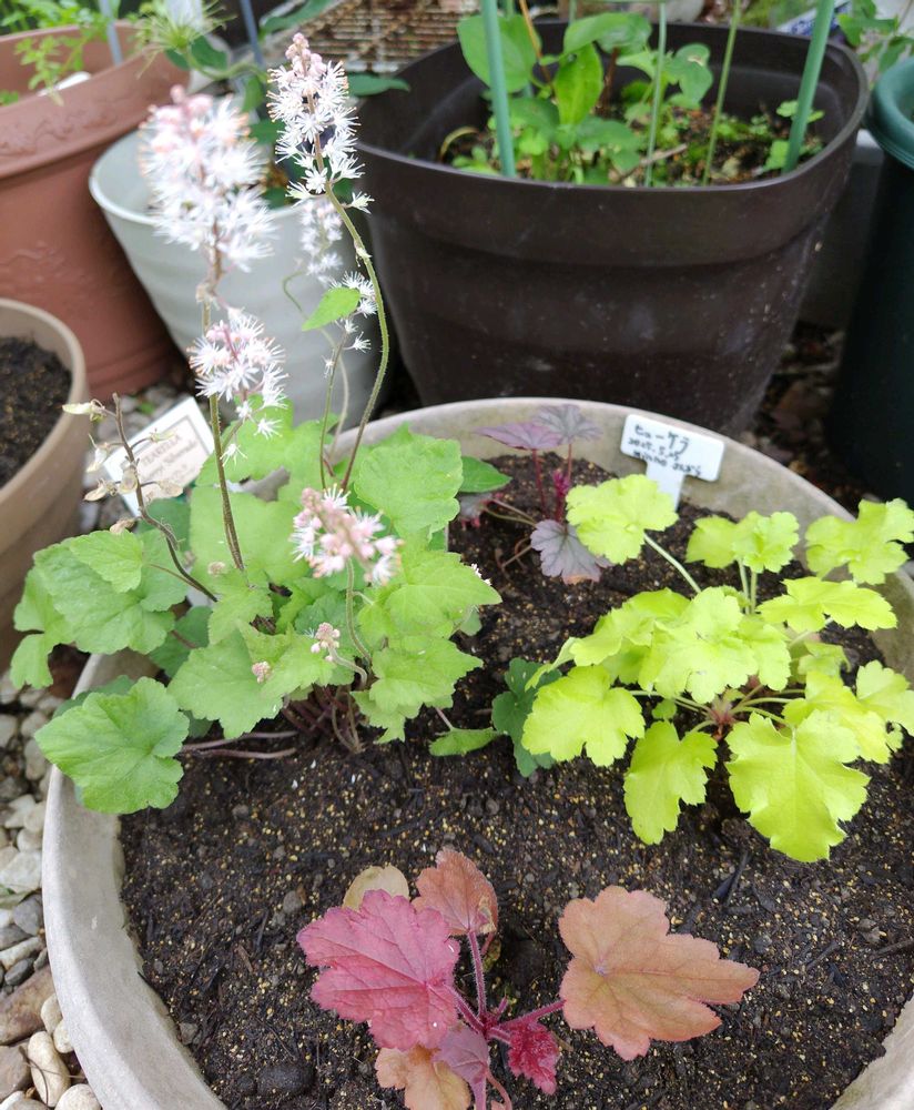 ②ティアレアと花友さんにいただいたヒューケラも寄せ植えに🤗