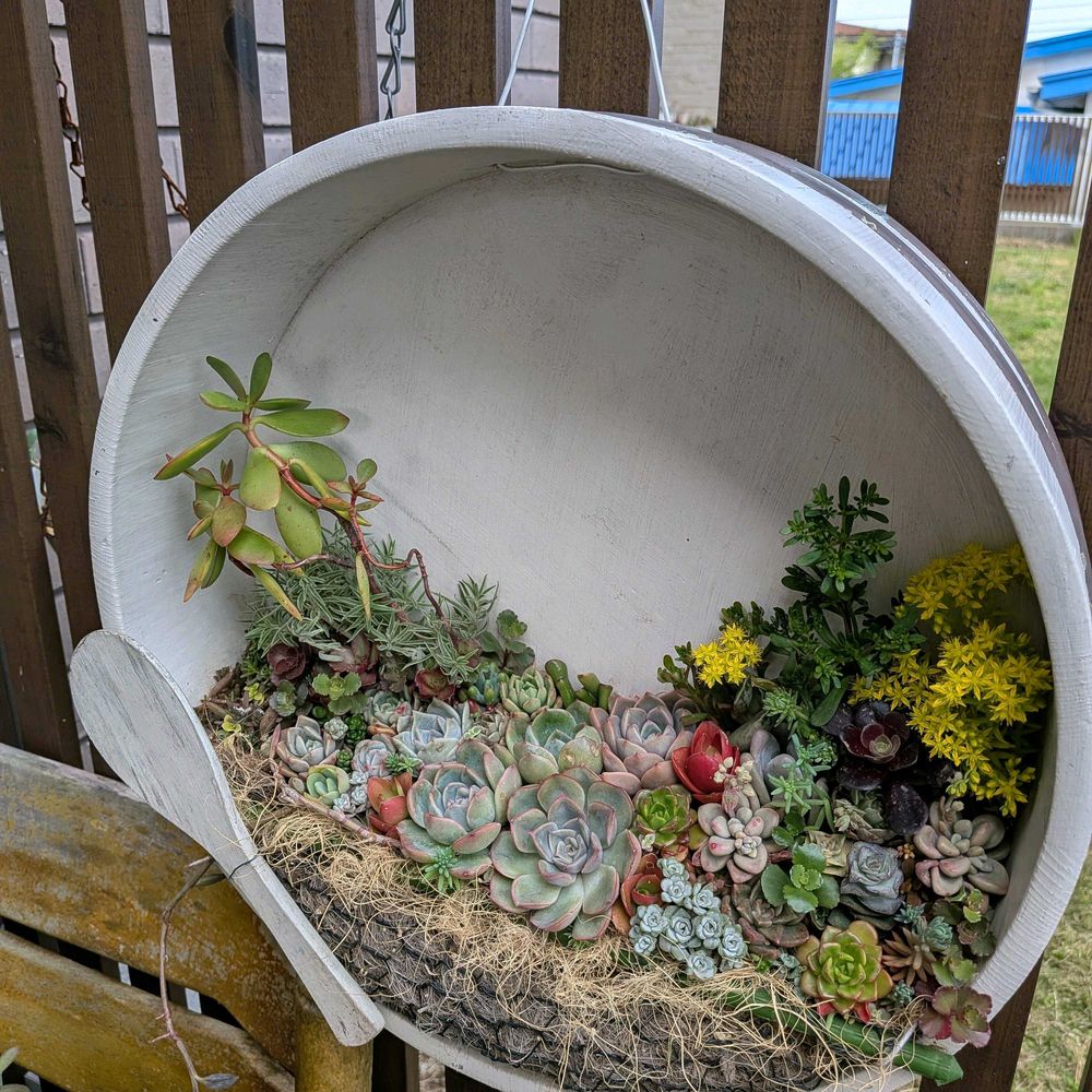 約40cmの寿司🍣桶に、久しぶりに寄せ植えし直しました