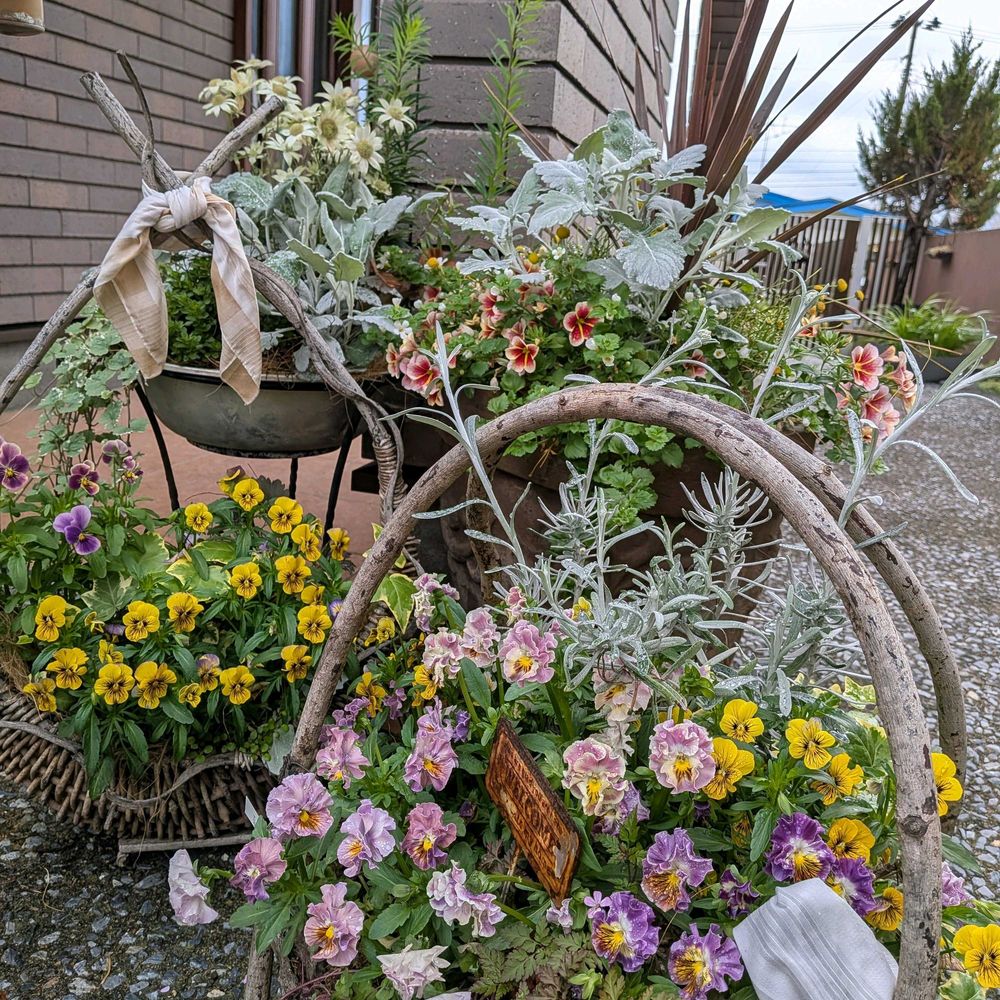 玄関前にこんなに素敵な寄せ植えがあったら立ち止まって見いっちゃう❤️