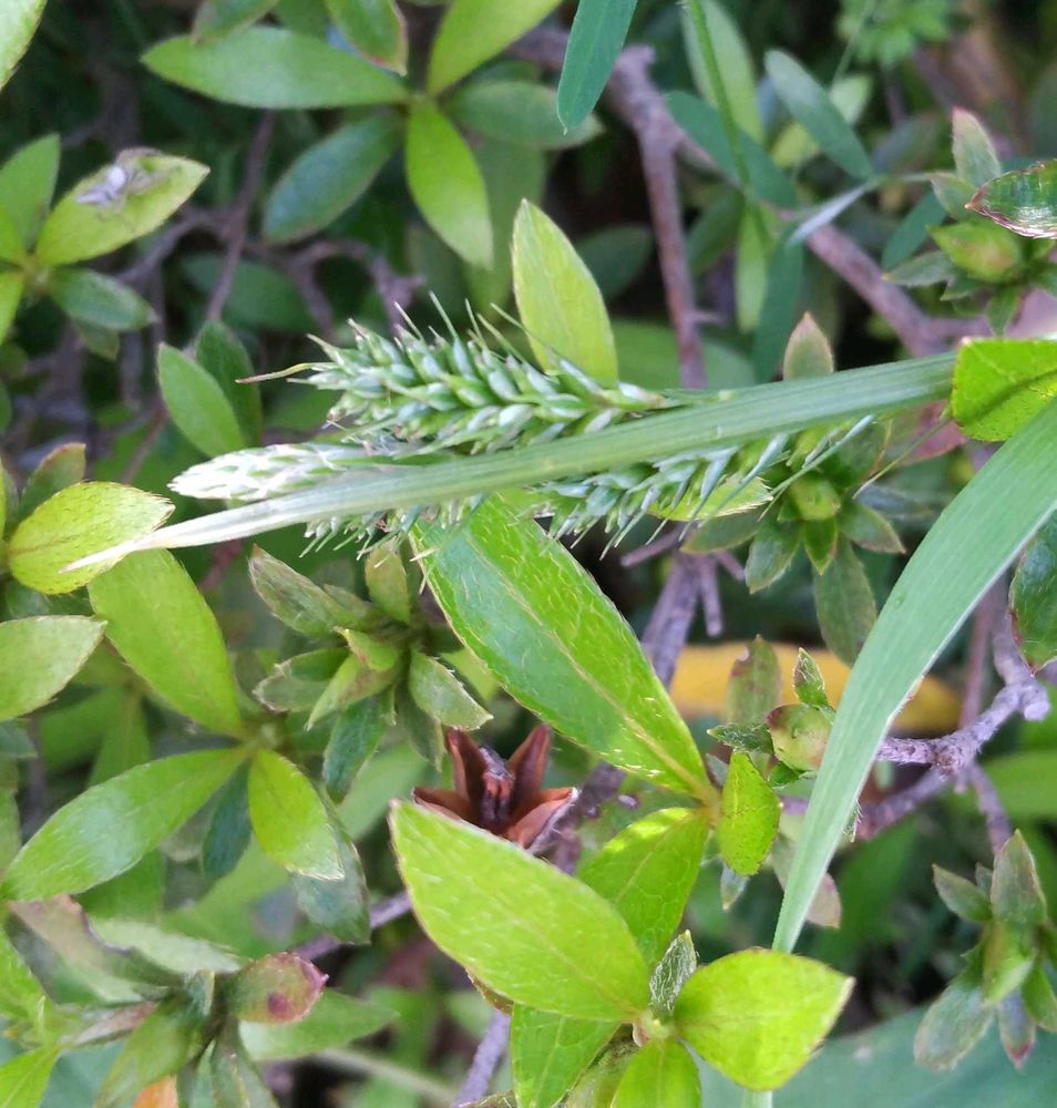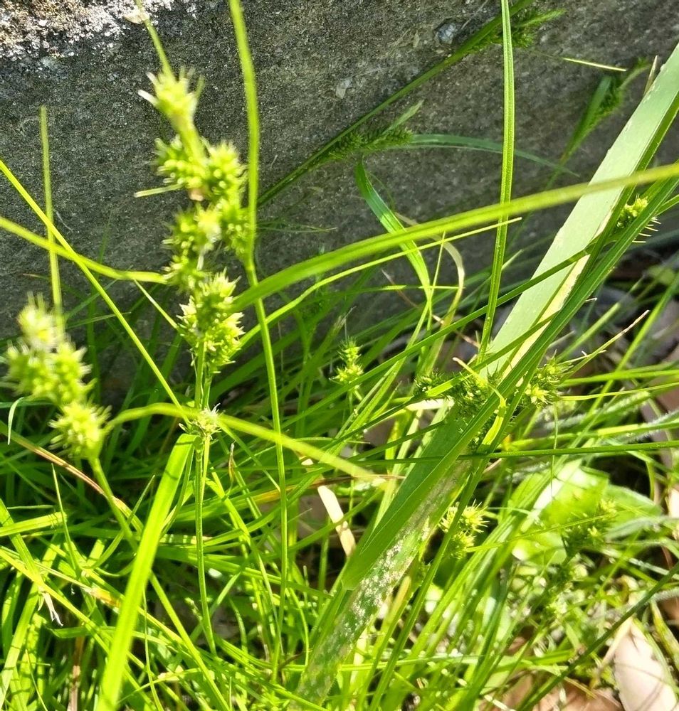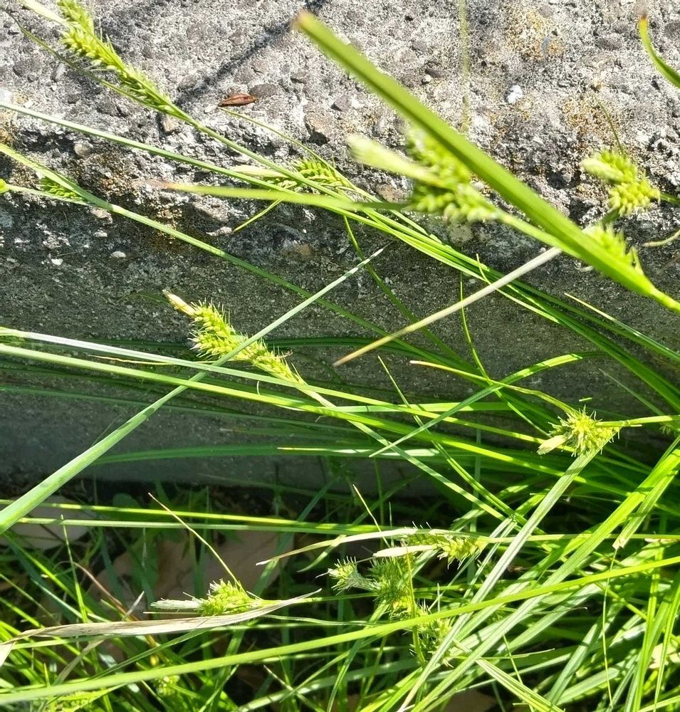 植え込みで時々見かけるアオスゲ。注意して見ていると、色々な所に生えていました❣️