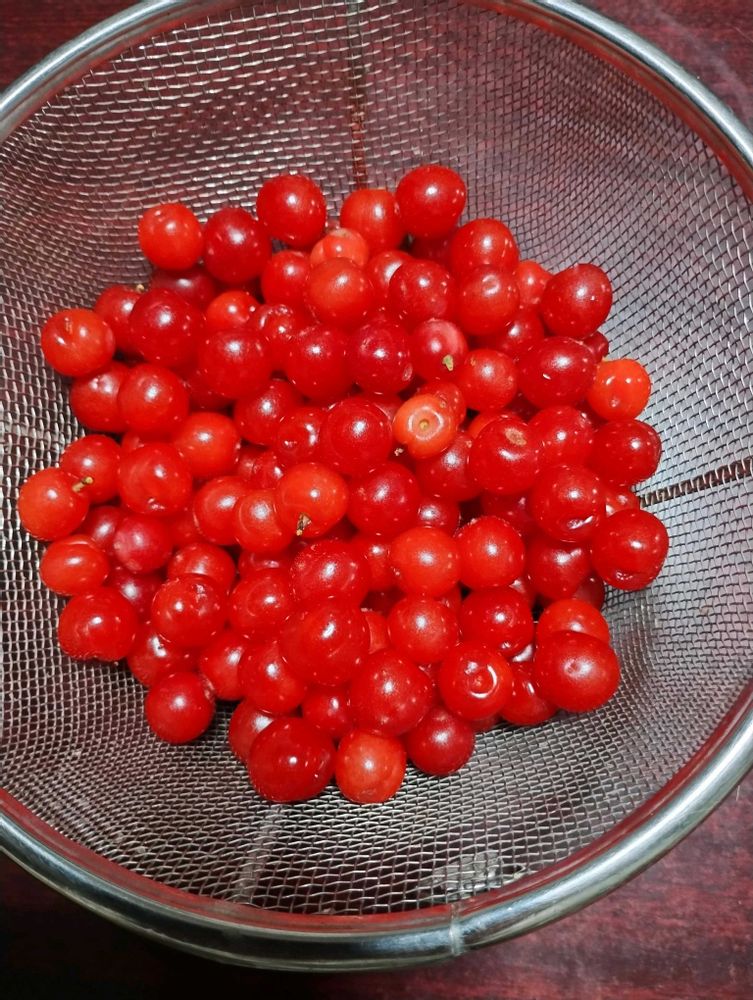 ユスラウメの収穫、そろそろ終わりです。今年はよくできてたくさん収穫できました。