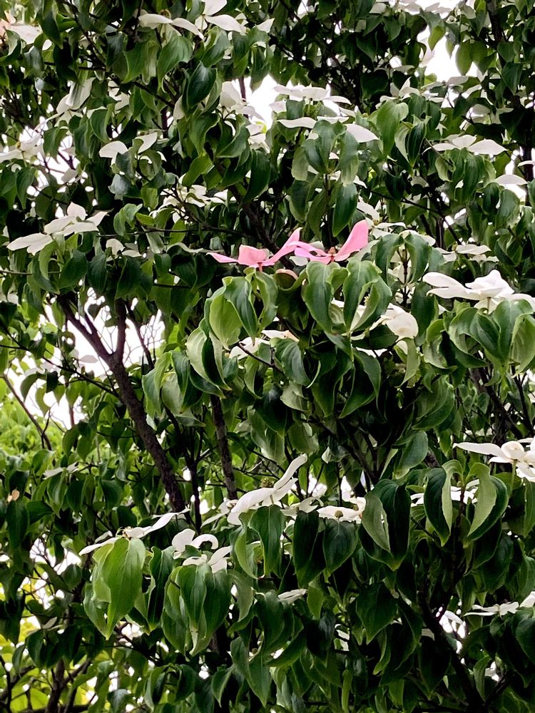 我が家にもヤマボウシがあり、花の老化や日照条件、気温などによってもわずかにピンクがかることはあります。