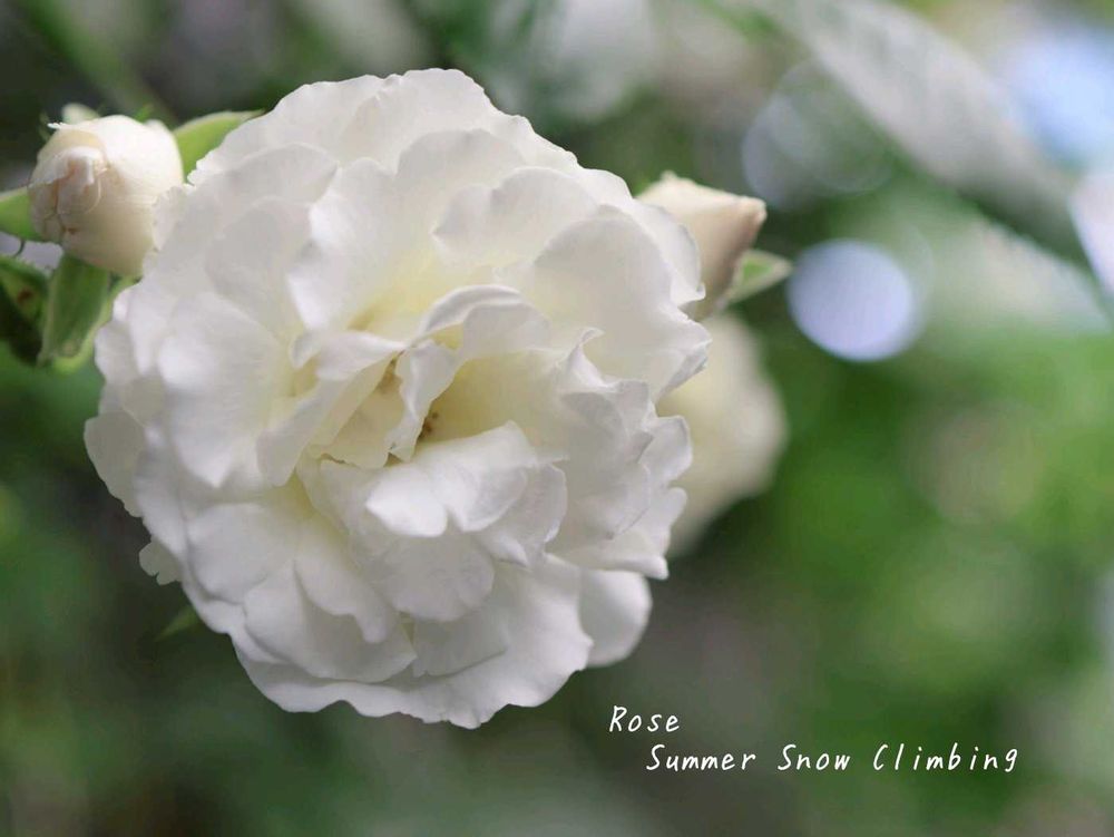 ミルク色の波打つ花弁が優しい雰囲気の薔薇