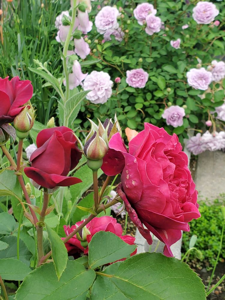 つるバラにもできるそうだけど、うちでは自立シュラブ。80cmくらい。3年目。