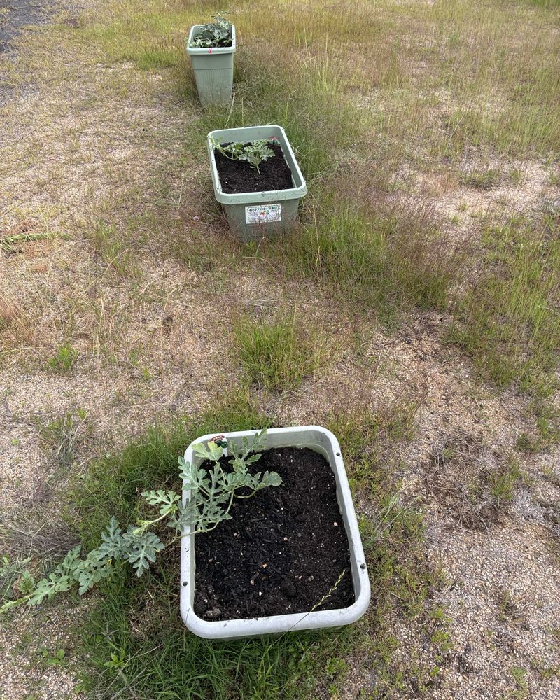 ②昨日、プランター栽培のスイカを植え替えました🍉