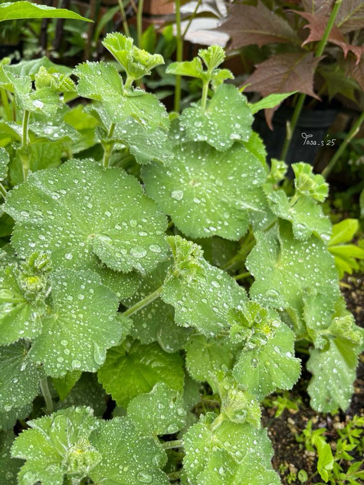 私の好きなロサグラウカの葉っぱが雨に濡れて綺麗😍💕