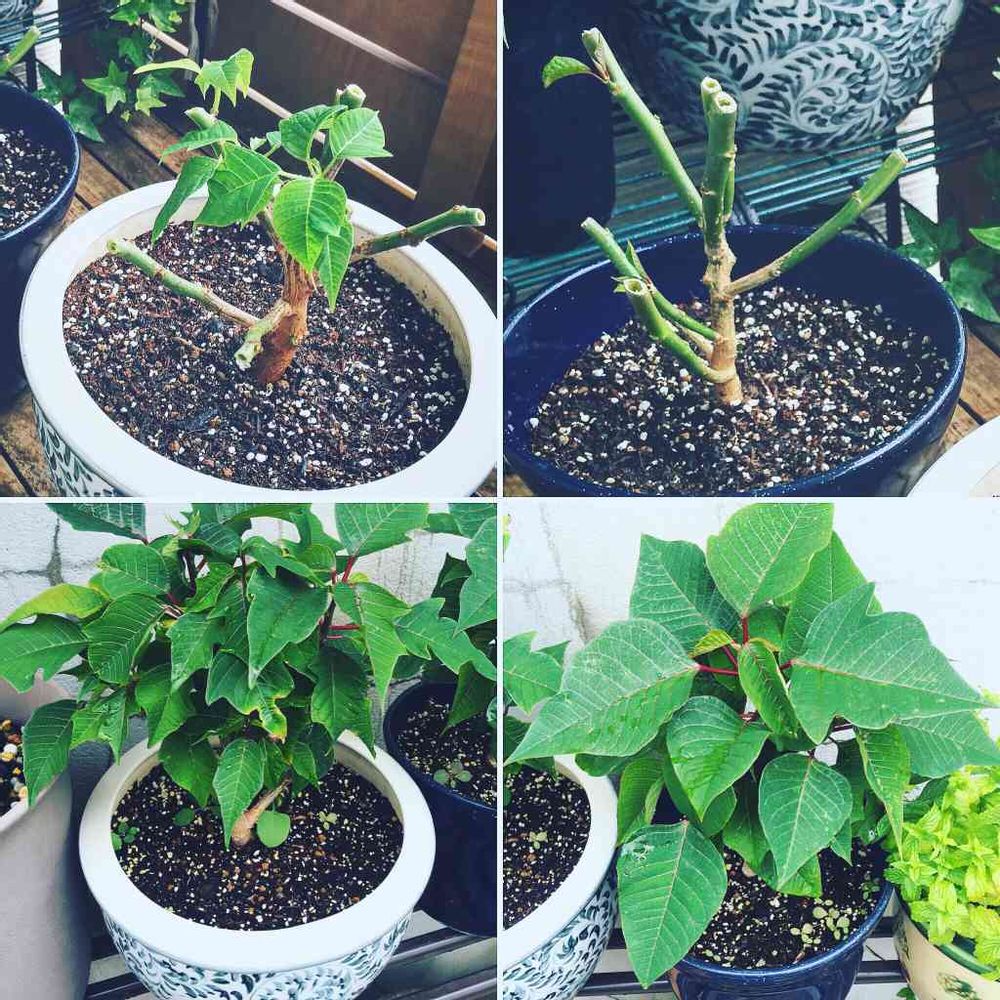 2ヶ月前にバサッと切ったポインセチア。葉っぱがワサワサしてきた♪( ´▽`)