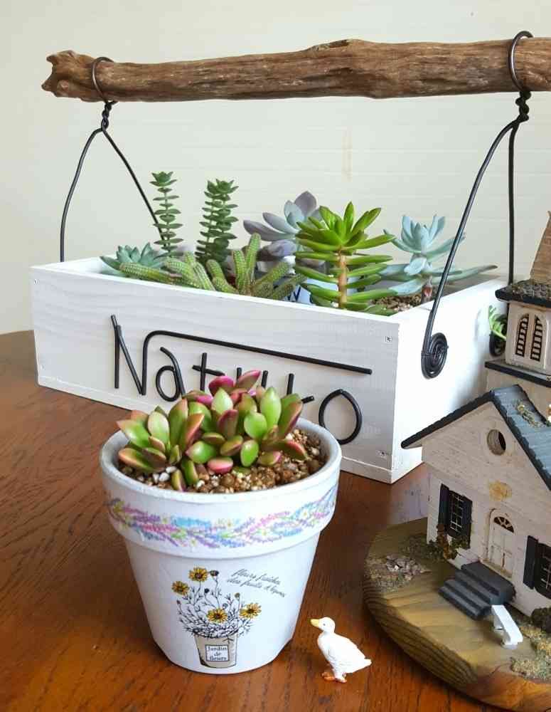 このリメ鉢は、白っぽい色を塗って、上の方にマスキングテープを貼りつけ、下の花や文字は転写シールを転写したものです。自分で描いていないのですよ。😁