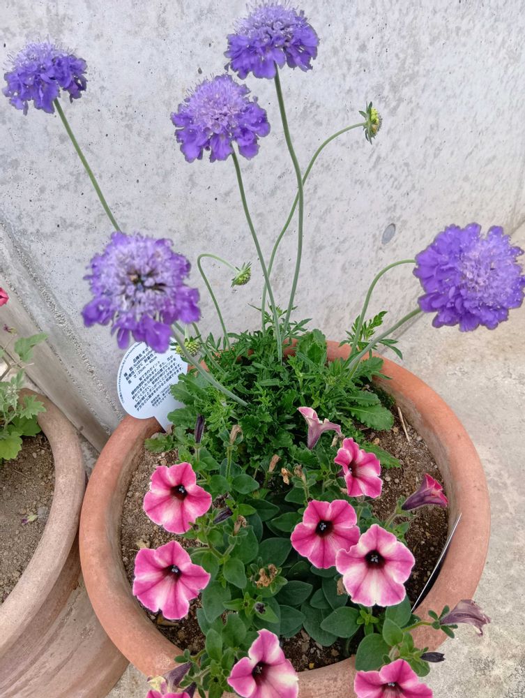 寄せ植えしました 難しいから2個だけにしました 好きなスカビオサにしました(><)👍🏻⭐️