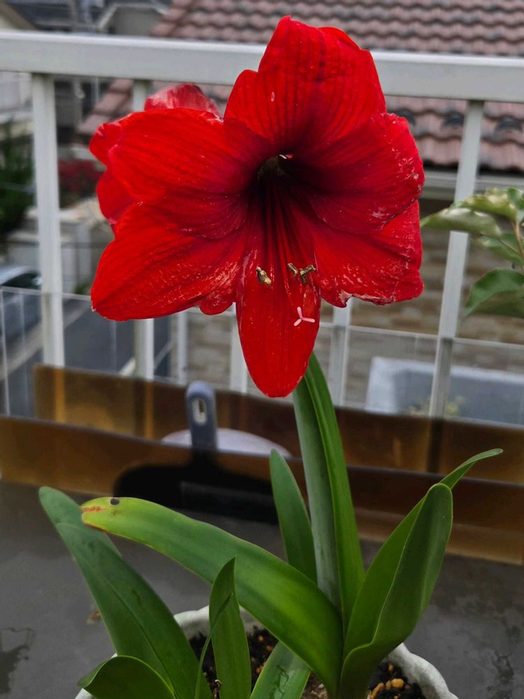 うちも真っ赤なアマリリス 頂き物 去年は咲かなかったのですが 今年は蕾が上がって来ました