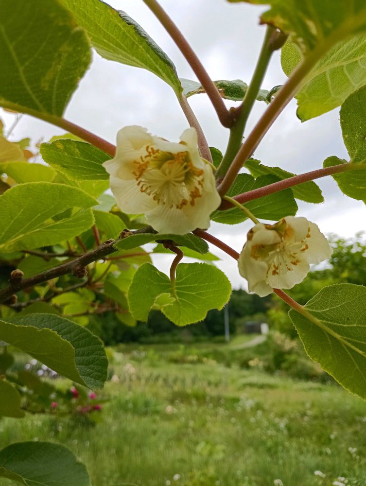 キウイの︎花って、初めてみたかも。キウイ育ててないと、見られないよね。