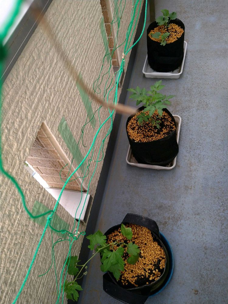 今年もベランダで冬の間ミックスレタスの植わっていた不織布のポットにグリーンカーテン用の苗を植えました🌱