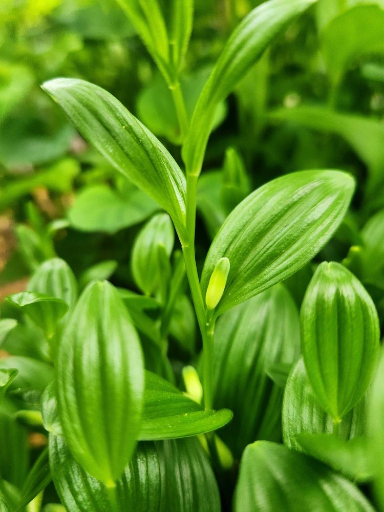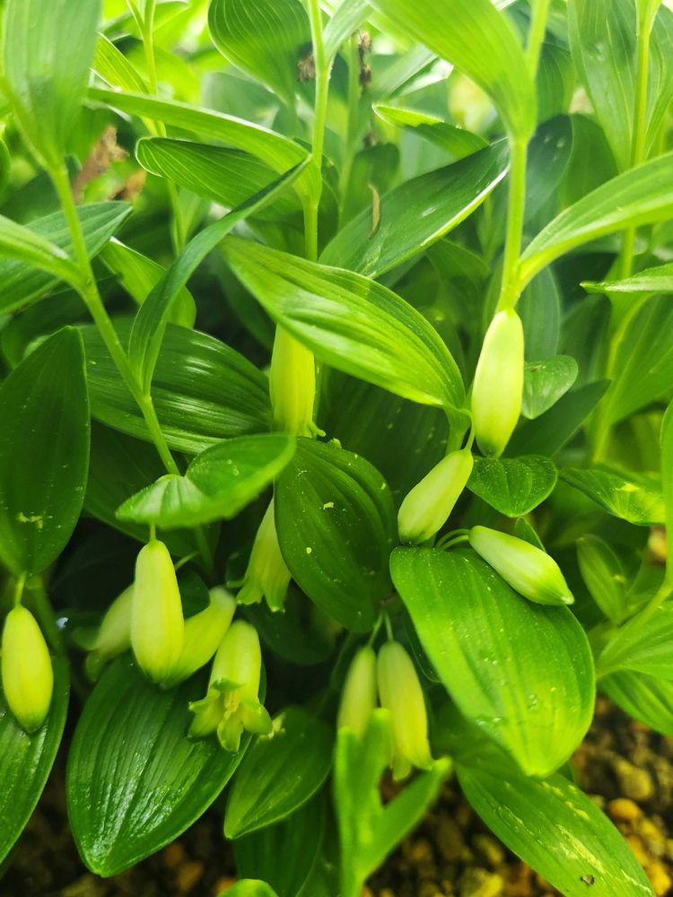 姫イズイは小さいアマドコロみたいですね。うちの子は地植えしのをアップで🤳しました~20センチ弱くらいです~