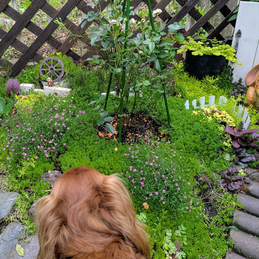 こんにちは🌞ALOHAさんガーデン素敵🤩モナカちゃんもすっかりとけ込んだおとぎの国みたい✨