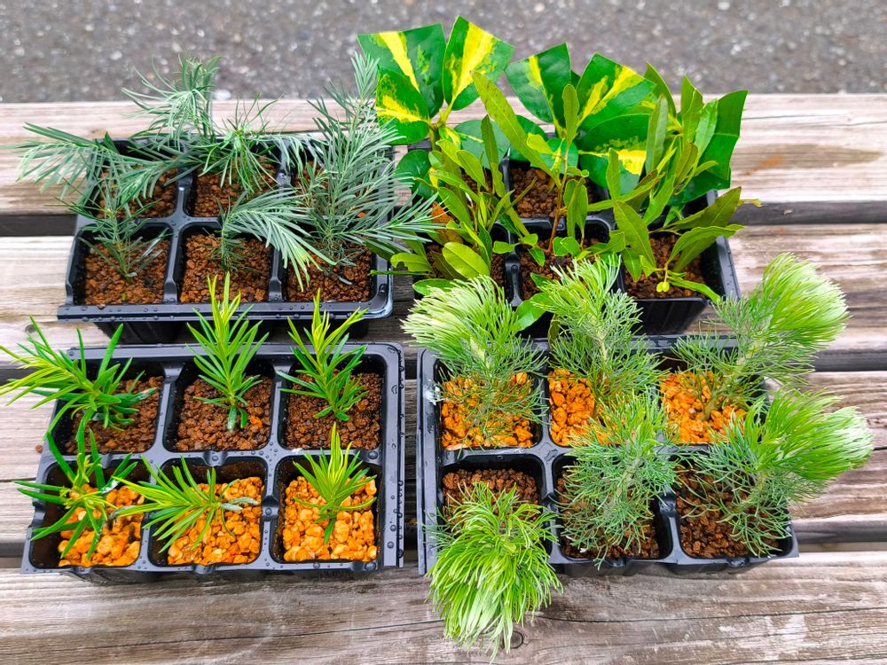 全部で10種類ですがあまり詳しく調べないでただ切って水にしばらく浸して発根促進剤を塗っ挿しただけなので全滅する種類もあるかもしれません😆